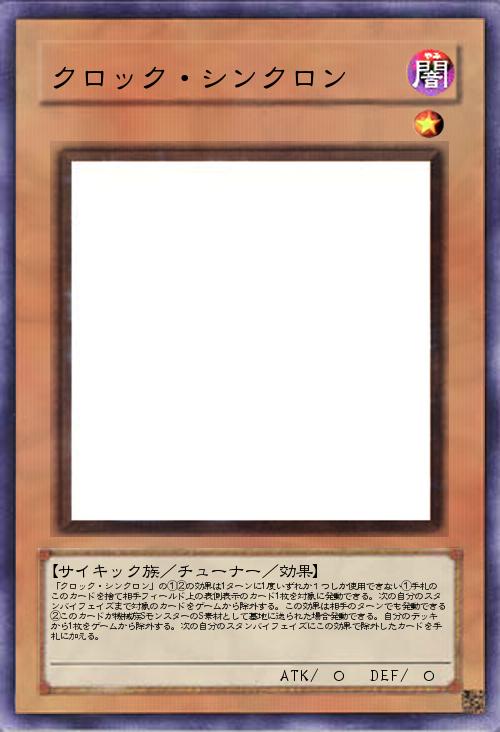 | 「クロック・シンクロン」の①②の効果は1ターンに1度いずれか1つしか使用できない①手札のこのカードを捨て相手フィールド上の表側表示のカード1枚を対象に発動できる。次の自分のスタンバイフェイズまで対象のカードをゲームから除外する。この効果は相手のターンでも発動できる②このカードが機械族SモンスターのS素材として墓地に送られた場合発動できる。自分のデッキから1枚をゲームから除外する。次の自分のスタンバイフェイズにこの効果で除外したカードを手札に加える。 | |||