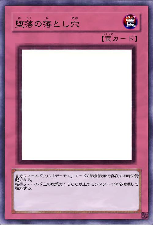 | 自分フィールド上に「デーモン」カードが表側表示で存在する時に発動できる。 相手フィールド上の攻撃力1500以上のモンスター1体を破壊して除外する。 | |||