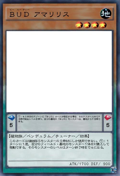 | ①:もう片方のPゾーンに「BUD」カードが存在する場合、そのPスケール内でP召喚可能なレベルを持つ、自分の墓地の「BUD」モンスターは、墓地からP召喚できる。 | |||
