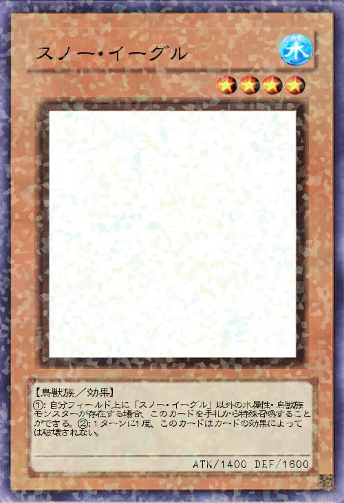 | ①:自分フィールド上に「スノー・イーグル」以外の水属性・鳥獣族モンスターが存在する場合、このカードを手札から特殊召喚することができる。②:1ターンに1度、このカードはカードの効果によっては破壊されない。 | |||