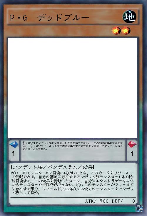 | ①:このモンスターのP召喚に成功したとき、このカードをリリースして発動できる。自分の墓地に存在するアンデット族モンスター1体を特殊召喚する。この効果を発動したターン、自分はエクストラデッキ以外からモンスターを特殊召喚できない。②:このモンスターがフィールドに存在する限り、フィールド上に存在する全てのモンスターをアンデット族として扱う。 | |||