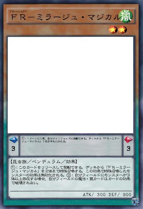 | ①:1ターンに1度、自分メインフェイズに発動できる。デッキから「FR-ミラージュ・マジカル」1枚を手札に加える。 | |||