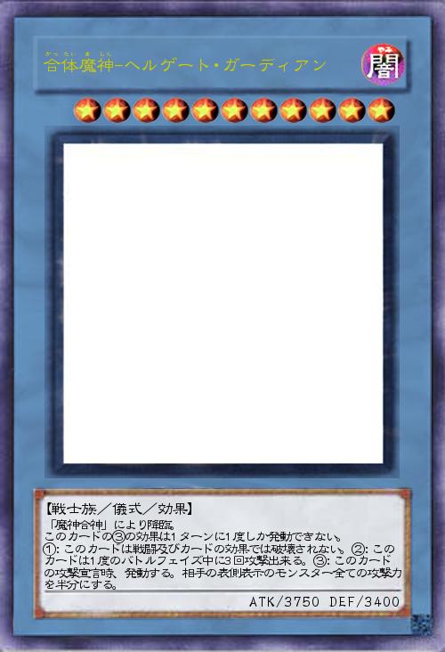 | 「魔神合神」により降臨。 このカードの③の効果は1ターンに1度しか発動できない。 ①:このカードは戦闘及びカードの効果では破壊されない。②:このカードは1度のバトルフェイズ中に3回攻撃出来る。③:このカードの攻撃宣言時、発動する。相手の表側表示のモンスター全ての攻撃力を半分にする。 | |||