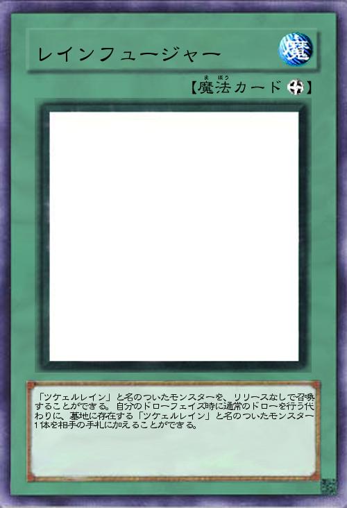 | 「ツケェルレイン」と名のついたモンスターを、リリースなしで召喚することができる。自分のドローフェイズ時に通常のドローを行う代わりに、墓地に存在する「ツケェルレイン」と名のついたモンスター1体を相手の手札に加えることができる。 | |||
