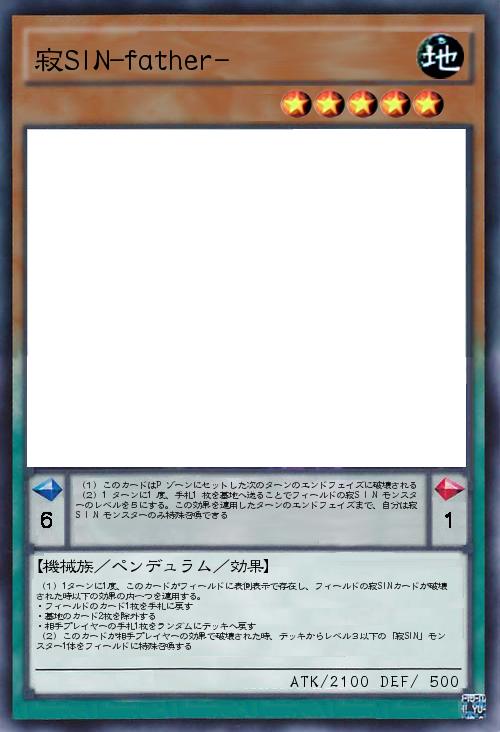 | (1)このカードはPゾーンにセットした次のターンのエンドフェイズに破壊される (2)1ターンに1度、手札1枚を墓地へ送ることでフィールドの寂SINモンスターのレベルを5にする。この効果を適用したターンのエンドフェイズまで、自分は寂SINモンスターのみ特殊召喚できる | |||