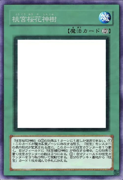 | 「桃宮桜花神樹」の②の効果は1ターンに1度しか使用できない。①:このカードが魔法&罠ゾーンに存在する限り、「桃宮」モンスターの表示形式が変更される度に、このカードに桃宮カウンターを1つ置く。自分フィールドに「桃宮橘花神樹」が存在する場合、この効果で置く桃宮カウンターの数は2つになる。②:自分フィールドの桃宮カウンターを3つ取り除いて発動できる。自分のデッキ・墓地から「桃宮」カード1枚を選んで手札に加える。 | |||