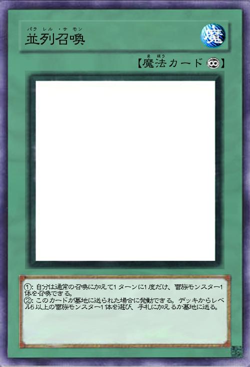 | ①:自分は通常の召喚に加えて1ターンに1度だけ、雷族モンスター1体を召喚できる。 ②:このカードが墓地に送られた場合に発動できる。デッキからレベル5以上の雷族モンスター1体を選び、手札に加えるか墓地に送る。 | |||