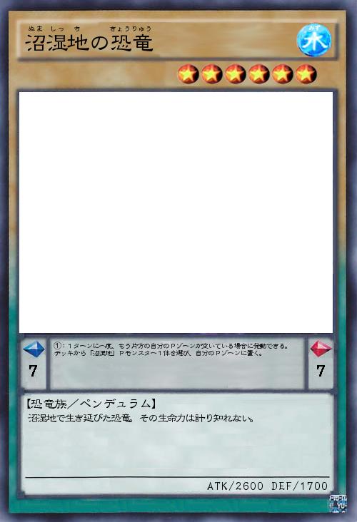| ①:1ターンに一度、もう片方の自分のPゾーンが空いている場合に発動できる。 デッキから「沼湿地」Pモンスター1体を選び、自分のPゾーンに置く。 | |||