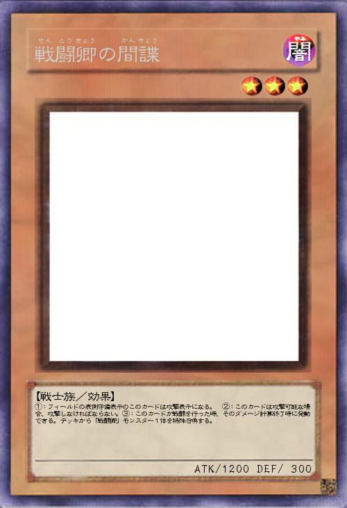 | ①:フィールドの表側守備表示のこのカードは攻撃表示になる。 ②:このカードは攻撃可能な場合、攻撃しなければならない。③:このカードが戦闘を行った時、そのダメージ計算終了時に発動できる。デッキから「戦闘卿」モンスター1体を特殊召喚する。 | |||