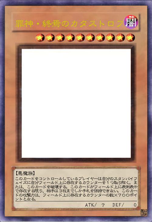 「手札干渉型のモンスターがほしいなぁと思っただけ。あとはカウンター依存もやってみたい…とかやってたら要素詰め込み過ぎてよくわからんことになった。一応罪神のトップモンスターの予定。」(2015-06-27 11:16)