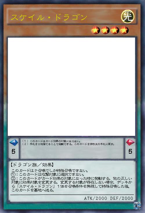 | このカードはP召喚でしか特殊召喚できない。 ①:このカードは攻撃対象に選択できない。 ②:このカードがカード効果の対象になった時に発動する。他の正しい対象に効果対象を変更する。変更する対象が存在しない場合、デッキから「スケイル・ドラゴン」1体を召喚条件を無視して特殊召喚した後、このカードを墓地へ送る。 | |||