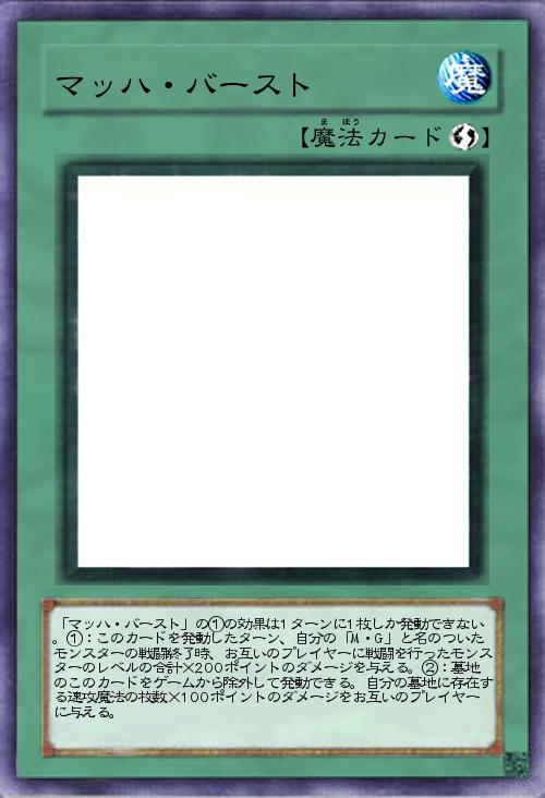 | 「マッハ・バースト」の①の効果は1ターンに1枚しか発動できない。①:このカードを発動したターン、自分の「M・G」と名のついたモンスターの戦闘終了時、お互いのプレイヤーに戦闘を行ったモンスターのレベルの合計×200ポイントのダメージを与える。②:墓地のこのカードをゲームから除外して発動できる。自分の墓地に存在する速攻魔法の枚数×100ポイントのダメージをお互いのプレイヤーに与える。 | |||