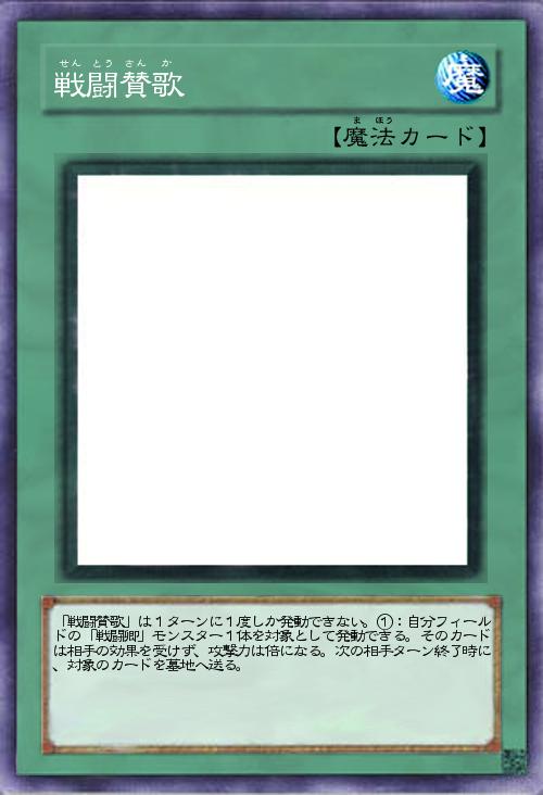 | 「戦闘賛歌」は1ターンに1度しか発動できない。①:自分フィールドの「戦闘卿」モンスター1体を対象として発動できる。そのカードは相手の効果を受けず、攻撃力は倍になる。次の相手ターン終了時に、対象のカードを墓地へ送る。 | |||