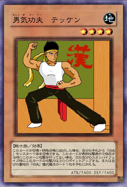 | このカードが召喚・特殊召喚に成功した場合、自分の手札から「功夫」モンスター1体を召喚できる。このカードが表側攻撃表示で存在する時にこのターン攻撃を行ってない場合、次の自分のスタンバイフェイズ時にこのカードの攻撃力は300ポイントアップする。または自分の墓地の「功夫」儀式魔法カード1枚を手札に加える。 | |||
