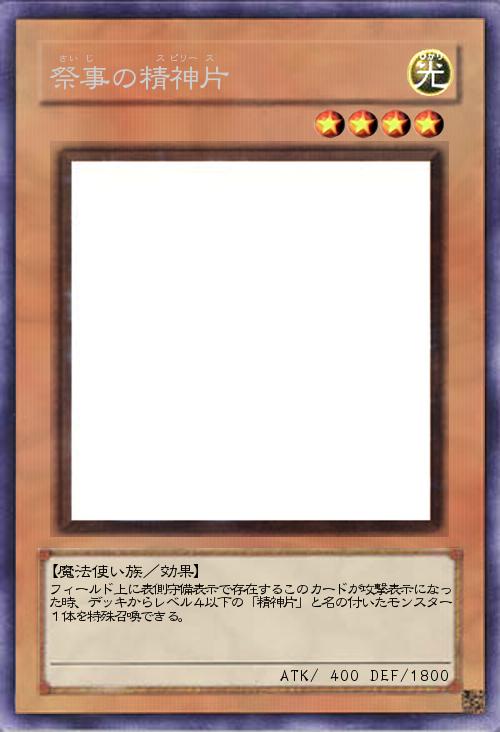| フィールド上に表側守備表示で存在するこのカードが攻撃表示になった時、デッキからレベル4以下の「精神片」と名の付いたモンスター1体を特殊召喚できる。 | |||