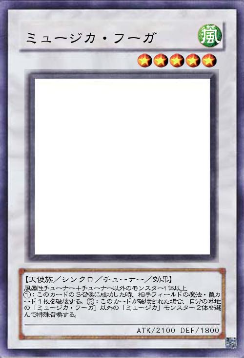 | 風属性チューナー+チューナー以外のモンスター1体以上 ①:このカードのS召喚に成功した時、相手フィールドの魔法・罠カード1枚を破壊する。②:このカードが破壊された場合、自分の墓地の「ミュージカ・フーガ」以外の「ミュージカ」モンスター2体を選んで特殊召喚する。 | |||