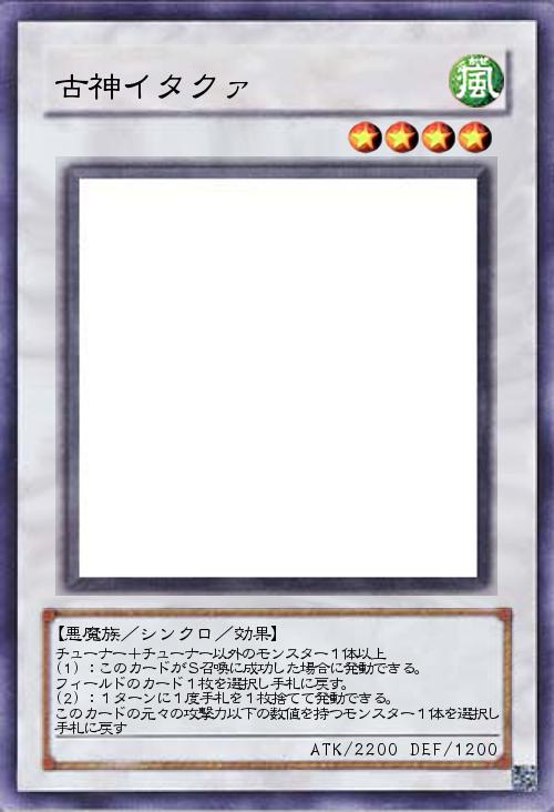 | チューナー+チューナー以外のモンスター1体以上 (1):このカードがS召喚に成功した場合に発動できる。 フィールドのカード1枚を選択し手札に戻す。 (2):1ターンに1度手札を1枚捨てて発動できる。 このカードの元々の攻撃力以下の数値を持つモンスター1体を選択し手札に戻す | |||