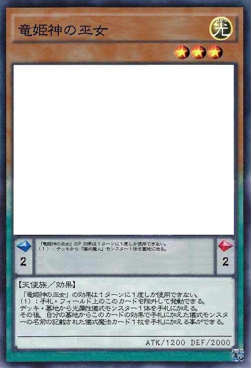 | 「竜姫神の巫女」のP効果は1ターンに1度しか使用できない。 (1):デッキから「儀式魔人」モンスター1体を墓地に送る。 | |||