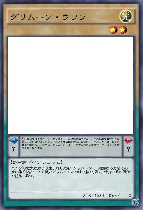 | ①:自分は「グリムーン」モンスターしか特殊召喚できない。この効果は無効化されない。②:自分メインフェイズに1度発動できる。自分のデッキの上からカードを2枚まで除外し、その中に「グリムーン」カードが含まれていた場合、さらにデッキから1枚ドローする。 | |||
