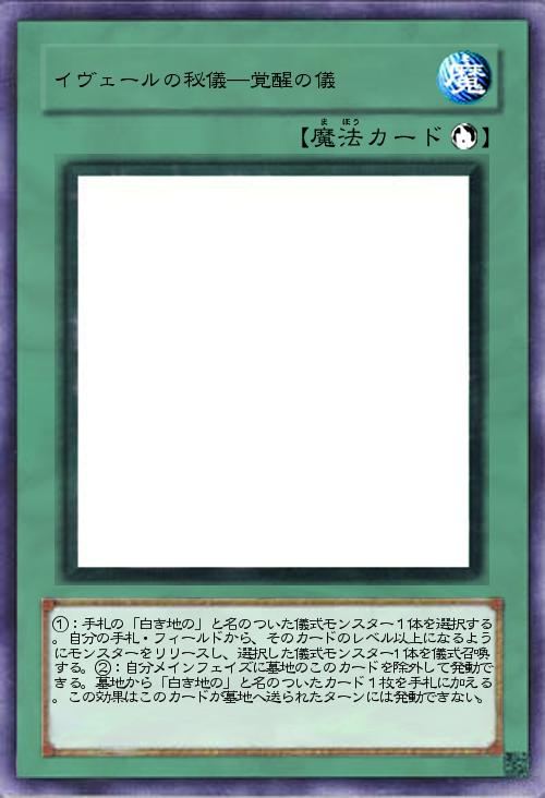| ①:手札の「白き地の」と名のついた儀式モンスター1体を選択する。自分の手札・フィールドから、そのカードのレベル以上になるようにモンスターをリリースし、選択した儀式モンスター1体を儀式召喚する。②:自分メインフェイズに墓地のこのカードを除外して発動できる。墓地から「白き地の」と名のついたカード1枚を手札に加える。この効果はこのカードが墓地へ送られたターンには発動できない。 | |||