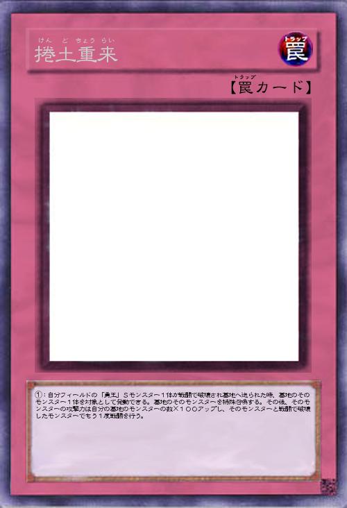 | ①:自分フィールドの「勇王」Sモンスター1体が戦闘で破壊され墓地へ送られた時、墓地のそのモンスター1体を対象として発動できる。墓地のそのモンスターを特殊召喚する。その後、そのモンスターの攻撃力は自分の墓地のモンスターの数×100アップし、そのモンスターと戦闘で破壊したモンスターでもう1度戦闘を行う。 | |||