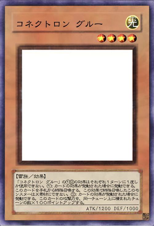 | 「コネクトロン グルー」の①②の効果はそれぞれ1ターンに1度しか使用できない。①:カードの効果が発動された場合に発動できる。このカードを手札から特殊召喚する。この効果で特殊召喚したこのモンスターはX素材にできない。②:カードの効果が発動された場合に発動できる。このカードの攻撃力を、同一チェーン上に積まれたチェーンの数×100ポイントアップする。 | |||
