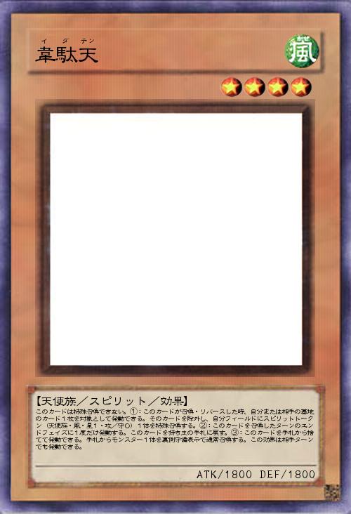 「マガタマニギタマとは別タイプのカードでスピリット強化を狙った結果がこうなりました。3番目のテキストについて、韋駄天っぽい効果を思い付いて最初は表側攻撃表示での召喚もいいかな~とか思っていたら二重召喚のほぼ上位互換になってしまったので、(スピリット縛りするのも微妙だったので)裏側守備表示限定に変更しました。フリーチェーンなので砂塵の悪霊で裏目を作りやすいと思います。」(2015-07-25 16:52)