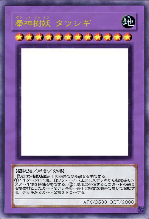 | 「妖術式-樹妖植臨-」の効果でのみ融合召喚できる。 ①:1ターンに1度、自分フィールド上にEXデッキから植物族モンスター1体を特殊召喚できる。②:墓地に存在するこのカードの融合召喚素材としたカードをデッキの一番下に好きな順番で戻して発動する。デッキからカード2枚をドローする。 | |||