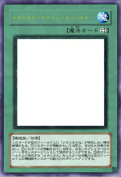 | このカードが自分フィールド上に「メカニカルQ」が存在しない場合破壊される。①このカードが発動されいてる限り、自分はX召喚できない。②このカードが発動されている限り、お互いのプレイヤーはPゾーンをモンスターゾーンとして使用することができる。③自分フィールド上に存在する「メカニカル」モンスターの攻撃力は自分フィールド上の機械族モンスターの数×200ポイントアップする。 | |||