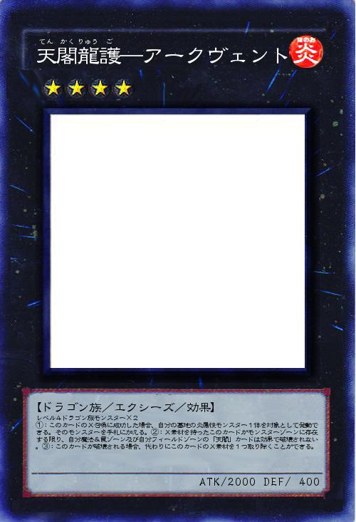 | レベル4ドラゴン族モンスター×2 ①:このカードのX召喚に成功した場合、自分の墓地の炎属性モンスター1体を対象として発動できる。そのモンスターを手札に加える。②:X素材を持ったこのカードがモンスターゾーンに存在する限り、自分魔法&罠ゾーン及び自分フィールドゾーンの「天閣」カードは効果で破壊されない。③:このカードが破壊される場合、代わりにこのカードのX素材を1つ取り除くことができる。 | |||