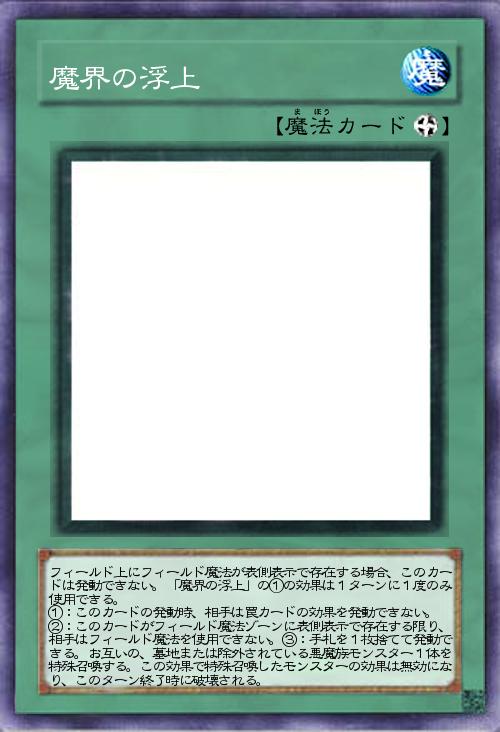 | フィールド上にフィールド魔法が表側表示で存在する場合、このカードは発動できない。「魔界の浮上」の①の効果は1ターンに1度のみ使用できる。 ①:このカードの発動時、相手は罠カードの効果を発動できない。 ②:このカードがフィールド魔法ゾーンに表側表示で存在する限り、相手はフィールド魔法を使用できない。③:手札を1枚捨てて発動できる。お互いの、墓地または除外されている悪魔族モンスター1体を特殊召喚する。この効果で特殊召喚したモンスターの効果は無効になり、このターン終了時に破壊される。 | |||