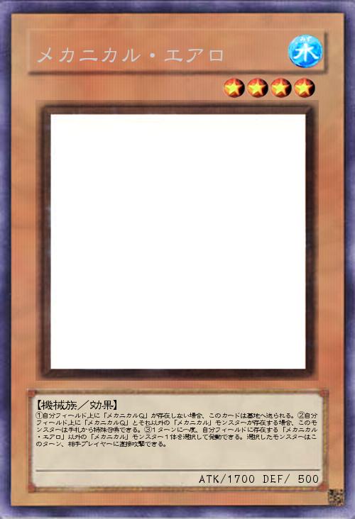 | ①自分フィールド上に「メカニカルQ」が存在しない場合、このカードは墓地へ送られる。②自分フィールド上に「メカニカルQ」とそれ以外の「メカニカル」モンスターが存在する場合、このモンスターは手札から特殊召喚できる。③1ターンに一度、自分フィールドに存在する「メカニカル・エアロ」以外の「メカニカル」モンスター1体を選択して発動できる。選択したモンスターはこのターン、相手プレイヤーに直接攻撃できる。 | |||