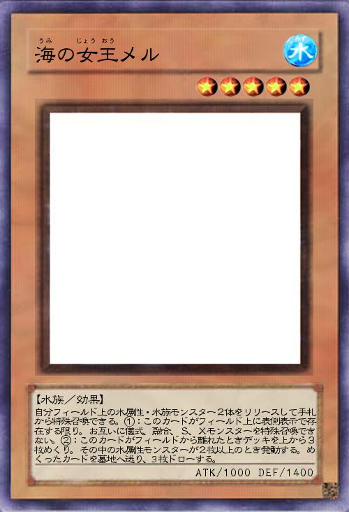 | 自分フィールド上の水属性・水族モンスター2体をリリースして手札から特殊召喚できる。①:このカードがフィールド上に表側表示で存在する限り。お互いに儀式、融合、S、Xモンスターを特殊召喚できない。②:このカードがフィールドから離れたときデッキを上から3枚めくり。その中の水属性モンスターが2枚以上のとき発動する。めくったカードを墓地へ送り、3枚ドローする。 | |||
