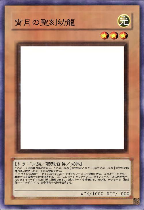 | このカードは通常召喚できない。このカードの②の効果はこのカードがこのカードの①の効果で特殊召喚に成功したターンのみ使用できる。 ①:手札の光属性・ドラゴン族モンスター1体をリリースして発動できる。このカードを手札・墓地から守備表示で特殊召喚する。 ②:このカードをリリースし、相手フィールド上に表側表示で存在するカード1枚を対象に発動できる。対象のカードを破壊する。その後、デッキから「聖刻龍―ネフテドラゴン」を守備表示で特殊召喚する。 | |||