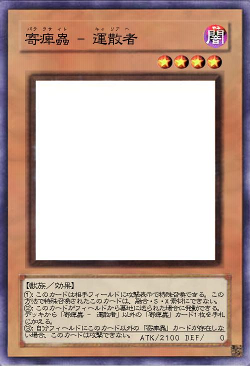 | ①:このカードは相手フィールドに攻撃表示で特殊召喚できる。この方法で特殊召喚されたこのカードは、融合・S・X素材にできない。 ②:このカードがフィールドから墓地に送られた場合に発動できる。デッキから「寄痺蟲 - 運散者」以外の「寄痺蟲」カード1枚を手札に加える。 ③:自分フィールドにこのカード以外の「寄痺蟲」カードが存在しない場合、このカードは攻撃できない。 | |||