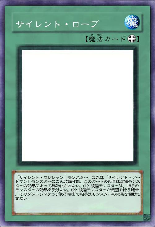 | 「サイレント・マジシャン」モンスター、または「サイレント・ソードマン」モンスターにのみ装備可能。このカードの効果は装備モンスターの効果によって無効化されない。①:装備モンスターは、相手のモンスターの効果を受けない。②:装備モンスターが戦闘を行う場合、そのダメージステップ終了時まで相手はモンスターの効果を発動できない。 | |||
