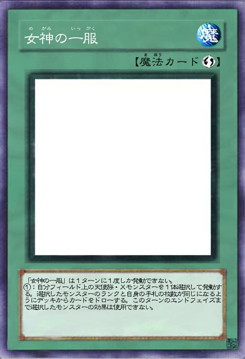 調べたところ、現在天使族エクシーズでの最大ランクは7のラッキーストライプだそうで、このカードを発動できれば7枚のドローが期待できます。ランク5や6がいれば、確実にアドが稼げますね。ぜひ女神様に使っていきたいです。」(2015-08-18 01:22)