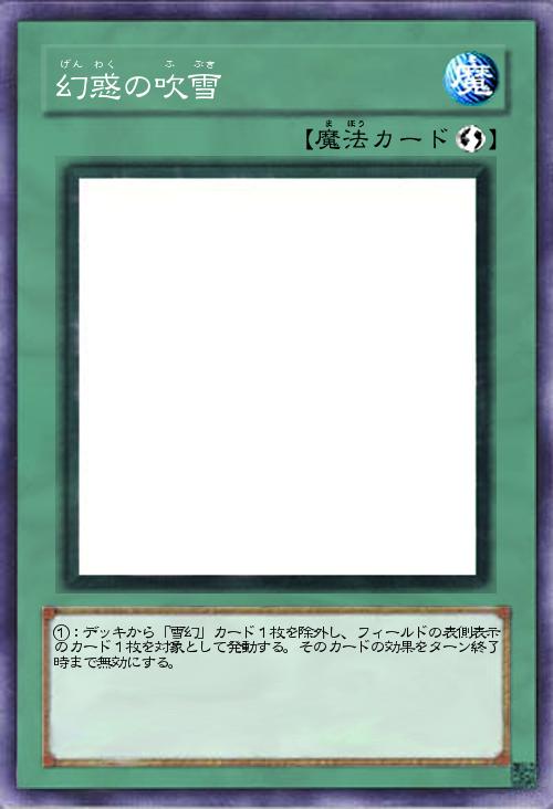 | ①:デッキから「雪幻」カード1枚を除外し、フィールドの表側表示のカード1枚を対象として発動する。そのカードの効果をターン終了時まで無効にする。 | |||