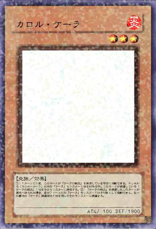 | ①:1ターンに1度、このカードが「ケーラの解炎」を装備している場合に発動できる。デッキから「カロル・ケーラ」以外の「ケーラ」モンスター1体を特殊召喚しこのカードが装備している「ケーラの解炎」1枚をそのモンスターに装備する。②:「ケーラの解炎」を装備したこのカードが墓地へ送られた場合、自分フィールドの「ケーラ」モンスター1体を対象として発動できる。自分の墓地の「ケーラ」装備魔法1枚を選んでそのモンスターに装備する。 | |||