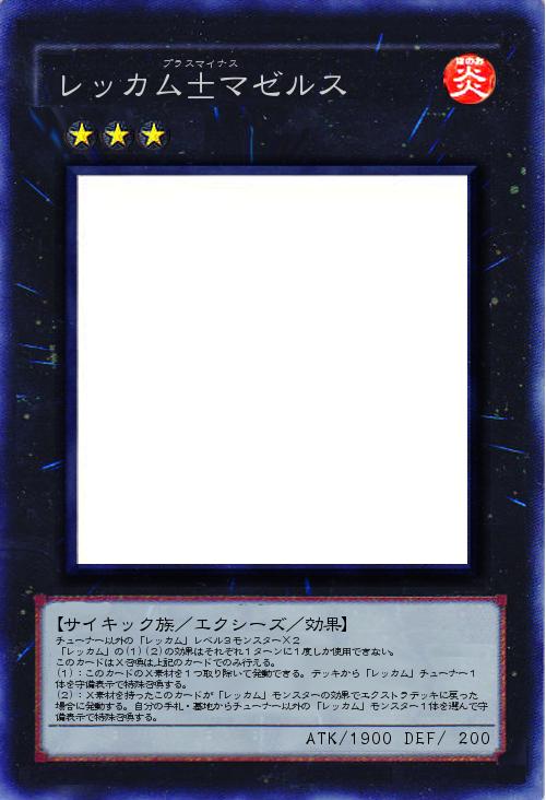 | チューナー以外の「レッカム」レベル3モンスター×2 「レッカム」の(1)(2)の効果はそれぞれ1ターンに1度しか使用できない。 このカードはX召喚は上記のカードでのみ行える。 (1):このカードのX素材を1つ取り除いて発動できる。デッキから「レッカム」チューナー1体を守備表示で特殊召喚する。 (2):X素材を持ったこのカードが「レッカム」モンスターの効果でエクストラデッキに戻った場合に発動する。自分の手札・墓地からチューナー以外の「レッカム」モンスター1体を選んで守備表示で特殊召喚する。 | |||