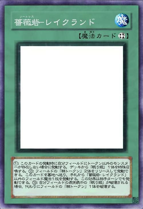 | ①:このカードの発動時に自分フィールドにトークン以外のモンスターが存在しない場合に発動する。デッキから「眠り姫」1体を特殊召喚する。②:フィールドの「棘トークン」2体をリリースして発動できる。このカードを墓地へ送り、手札から「薔薇砦-レイクランド」以外のフィールド魔法1枚を発動する。この効果は相手ターンでも発動できる。③:自分フィールドの表側表示の「眠り姫」が破壊される場合、代わりにフィールドの「棘トークン」1体を破壊する。 | |||