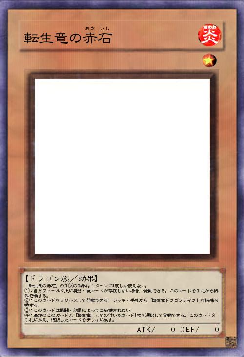 | 「転生竜の赤石」の①②の効果は1ターンに1度しか使えない。 ①:自分フィールド上に魔法・罠カードが存在しない場合、発動できる。このカードを手札から特殊召喚する。 ②:このカードをリリースして発動できる。デッキ・手札から「転生竜ドラゴファイラ」を特殊召喚する。 ③:このカードは戦闘・効果によっては破壊されない。 ④:墓地のこのカードと「転生竜」と名の付いたカード1枚を選択して発動できる。このカードを手札に加え、選択したカードをデッキに戻す。 | |||