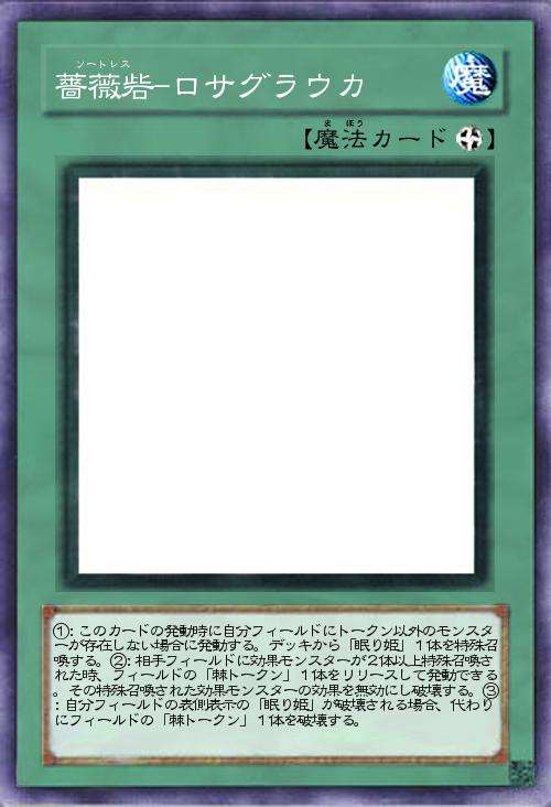 | ①:このカードの発動時に自分フィールドにトークン以外のモンスターが存在しない場合に発動する。デッキから「眠り姫」1体を特殊召喚する。②:相手フィールドに効果モンスターが2体以上特殊召喚された時、フィールドの「棘トークン」1体をリリースして発動できる。その特殊召喚された効果モンスターの効果を無効にし破壊する。③:自分フィールドの表側表示の「眠り姫」が破壊される場合、代わりにフィールドの「棘トークン」1体を破壊する。 | |||