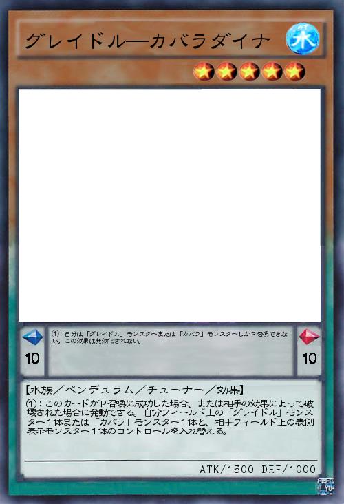 | ①:このカードがP召喚に成功した場合、または相手の効果によって破壊された場合に発動できる。自分フィールド上の「グレイドル」モンスター1体または「カバラ」モンスター1体と、相手フィールド上の表側表示モンスター1体のコントロールを入れ替える。 | |||