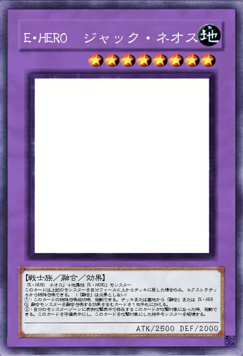 | 「E・HERO ネオス」+地属性「E・HERO」モンスター このカードは上記のモンスターを自分フィールド上からデッキに戻した場合のみ、エクストラデッキから特殊召喚できる。(「融合」は必要としない) ①:このカードの特殊召喚成功時、発動できる。デッキまたは墓地から「融合」または「E・HERO」融合モンスターを融合召喚する効果を含むカードを1枚手札に加える。 ②:自分のモンスターゾーンに表側攻撃表示で存在するこのカードが攻撃対象になった時、発動できる。このカードを守備表示にし、このカードを攻撃対象にした相手モンスターを破壊する。 | |||