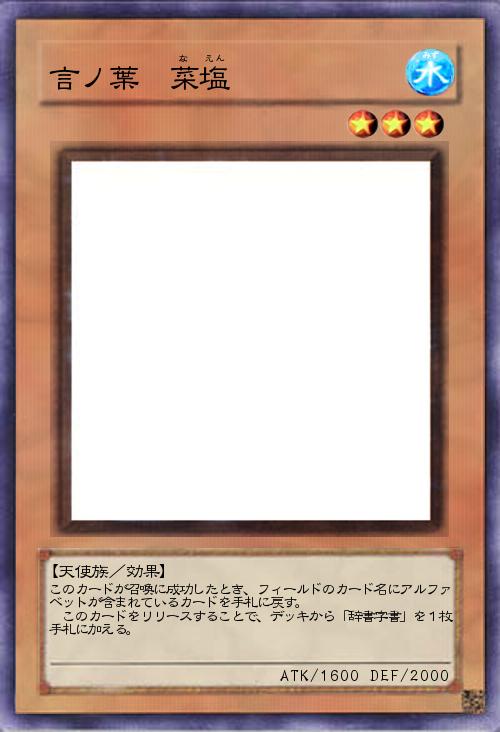 | このカードが召喚に成功したとき、フィールドのカード名にアルファベットが含まれているカードを手札に戻す。 このカードをリリースすることで、デッキから「辞書字書」を1枚手札に加える。 | |||
