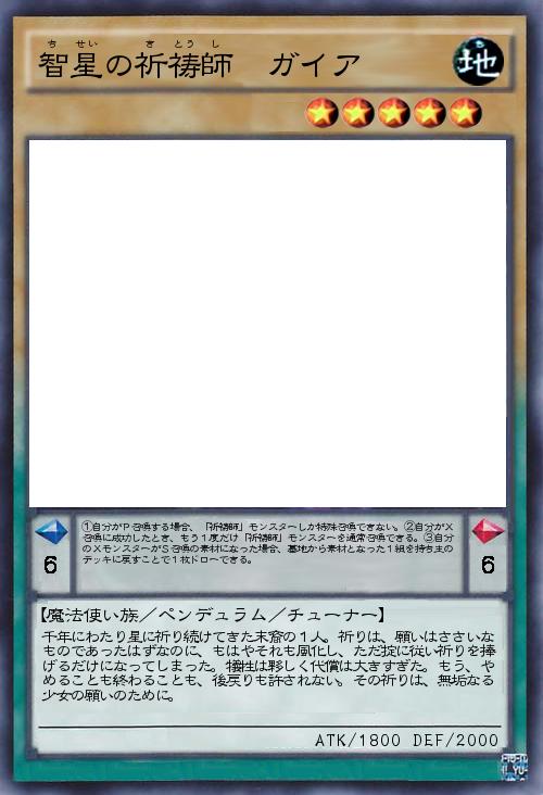 | ①自分がP召喚する場合、「祈祷師」モンスターしか特殊召喚できない。②自分がX召喚に成功したとき、もう1度だけ「祈祷師」モンスターを通常召喚できる。③自分のXモンスターがS召喚の素材になった場合、墓地から素材となった1組を持ち主のデッキに戻すことで1枚ドローできる。 | |||