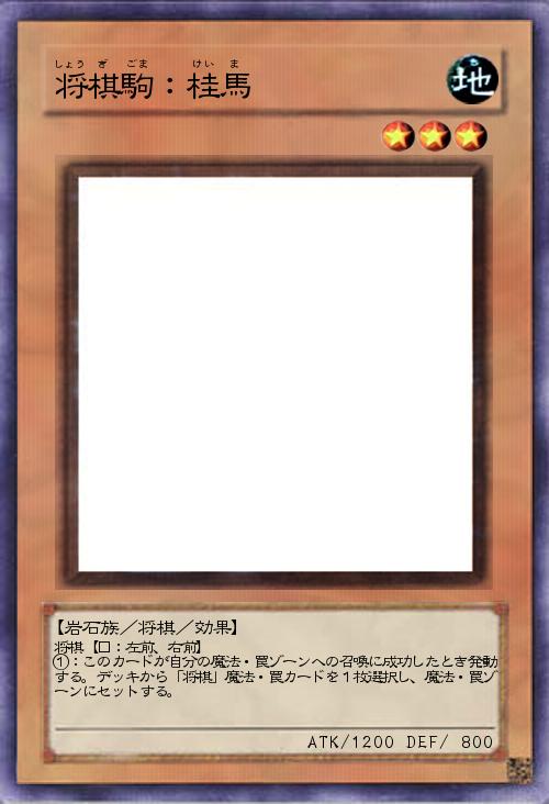 | 将棋【□:左前、右前】 ①:このカードが自分の魔法・罠ゾーンへの召喚に成功したとき発動する。デッキから「将棋」魔法・罠カードを1枚選択し、魔法・罠ゾーンにセットする。 | |||