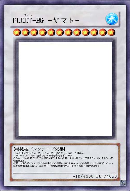 | 「FLEET」と付くチューナー+チューナー以外のモンスター1体以上 このカードはシンクロ召喚でしか特殊召喚できず、次の このカードが攻撃を終えてい時に発動出来る。攻撃力を500ポイント下げることによりもう一度攻撃出来る。 攻撃力が500ポイント以下である場合この効果は使用出来ない。この効果により相手プレイヤーに直接攻撃は出来ない。このカードの攻撃力は相手ターン終了時に元の数値に戻る。 | |||