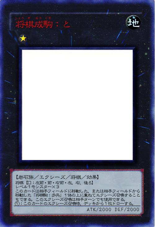 | 将棋【□:左前・前・右前・左、右、後ろ】 レベル1モンスター×3 このカードは相手フィールドに移動した、または相手フィールドから移動した「将棋駒:歩兵」1体の上に重ねてエクシーズ召喚することもできる。このエクシーズ召喚は相手ターンでも使用できる。 ①:このカードのエクシーズ召喚時、デッキから1枚ドローする。 | |||